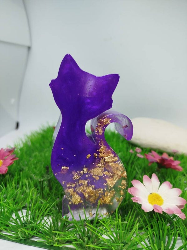 Petit chat noir bougeoir en résine époxy et feuille d'or