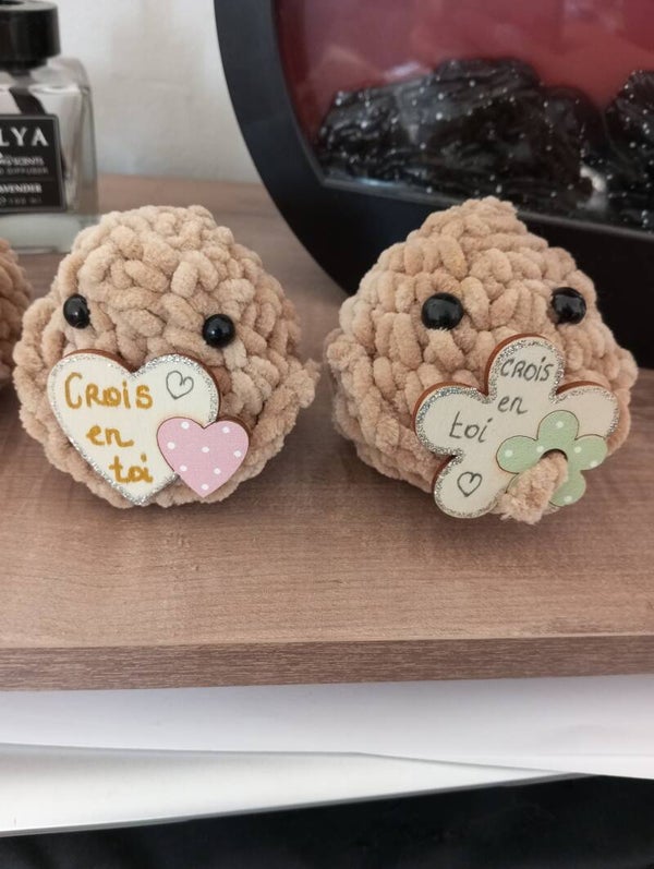 Mes patates au crochet débarquent avec leur bonne humeur contagieuse et leur petit message bienveillant. Un petit rien qui fait beaucoup !