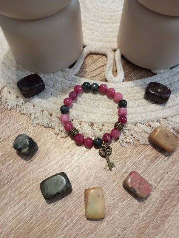 Ensemble, elles offrent un bel équilibre entre calme intérieur et protection. J’y ai ajouté une petite clé, symbole d’ouverture, pour que ce bijou soit aussi unique que vous.