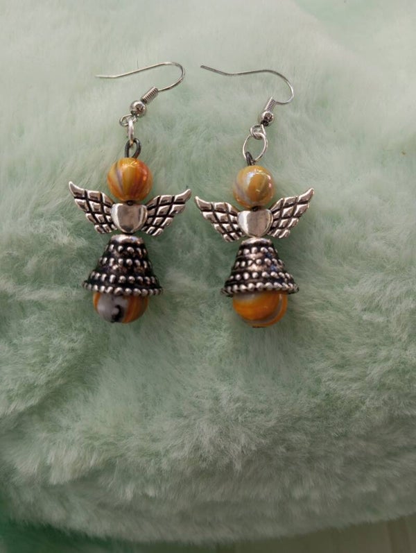 Boucles d'oreilles ange en perle de verre et argenté plusieurs coloris